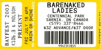 Thursday, July 17th 2003 The Getaway (Opening Act) Sum 41 Blink 182 Friday, July 18th 2003 Barlow (Opening Act) Barenaked Ladies Saturday, July 19th 2003, Afternoon Pilate (on the bill as Opening Act, but didn't play) Matthew Good Saturday, July 19th 2003, Evening Pete Yorn (Opening Act during entire Foo Fighters Tour) Foo Fighters Cheap Trick |